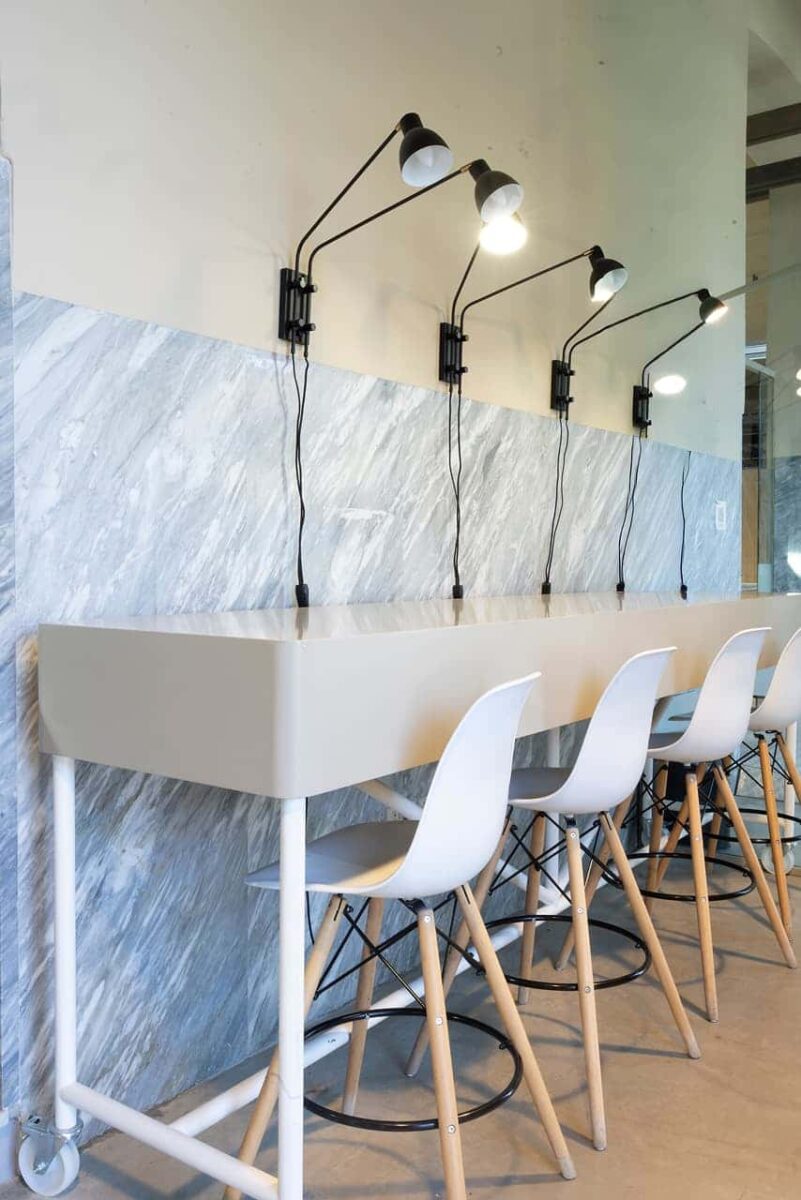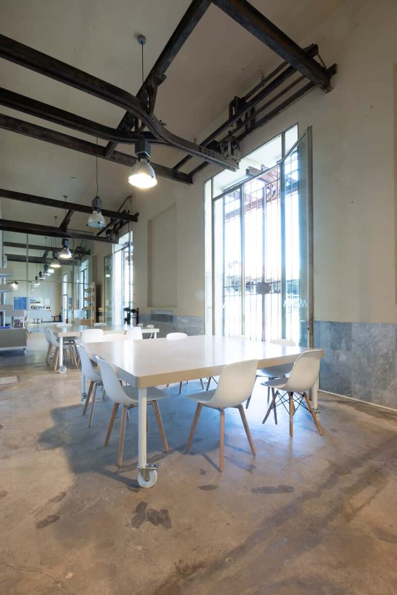 Located in the Galleria delle Bilance, the study room sits within an industrial archaeology architectural context of approximately 5,000 square metres, characterised by large naves, metal structures and extensive glass surfaces that enhance volumes and perspectives. Within this setting, the 28 study workstations and 6 reading seats offer an intimate environment embedded in a place with a strong visual identity, ideal for concentrating while feeling part of a broader cultural ecosystem.